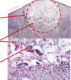 In some instances, the pathological tissue may take up the light thus resulting in a shadowing of the structures.