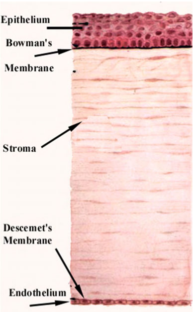 5 layers (including epithelium, stroma and endothelium)