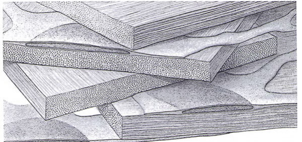Collagenfibrils are different diameters, lengths, and lay at different angles to each other