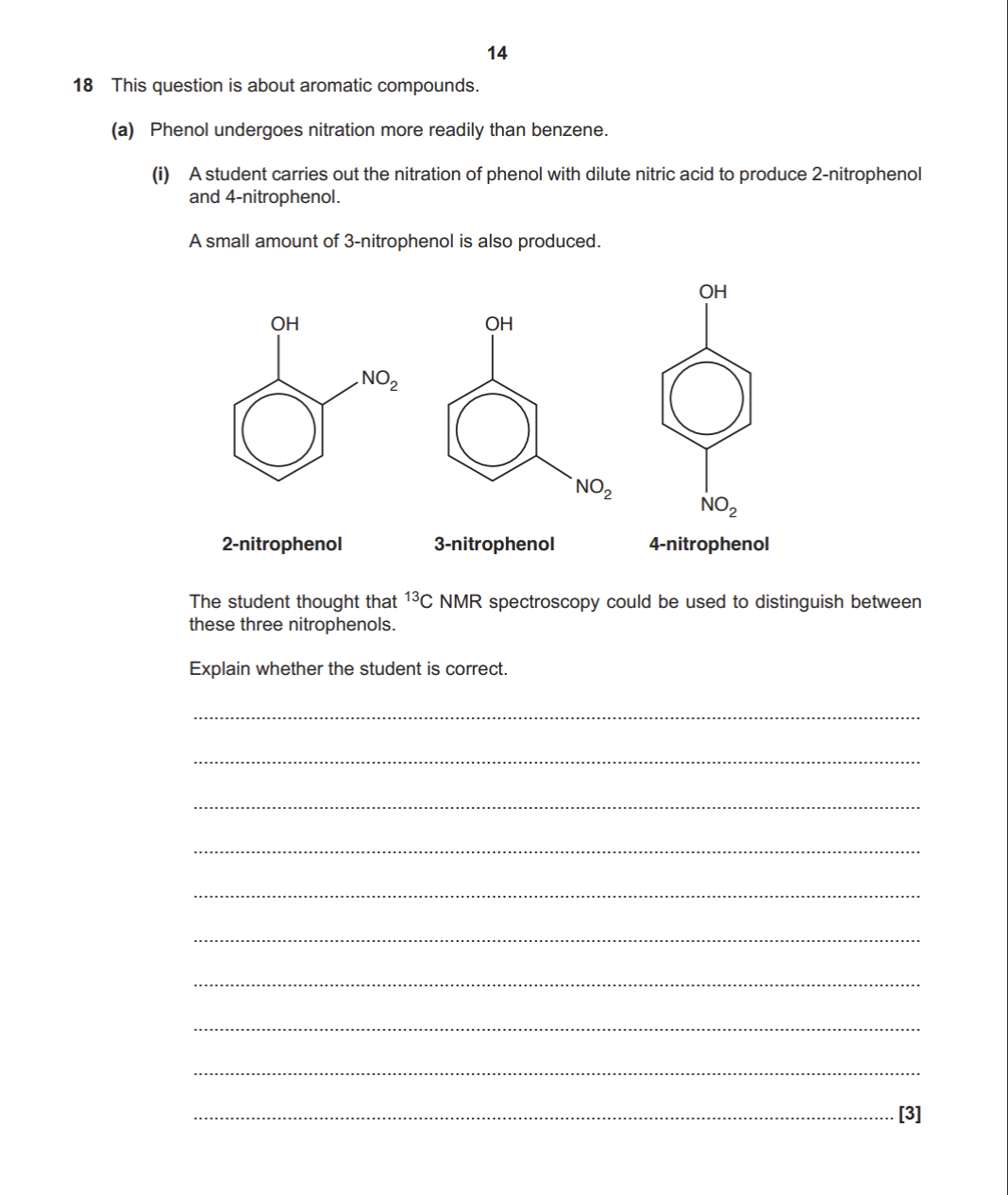 2- nitrophenol and 3 nitrophenol have 6 peaks/ 6 environments