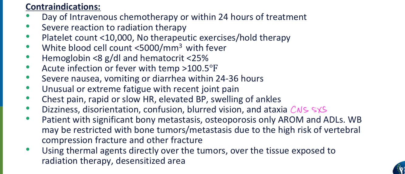 Contraindications to cancer and exercise