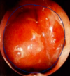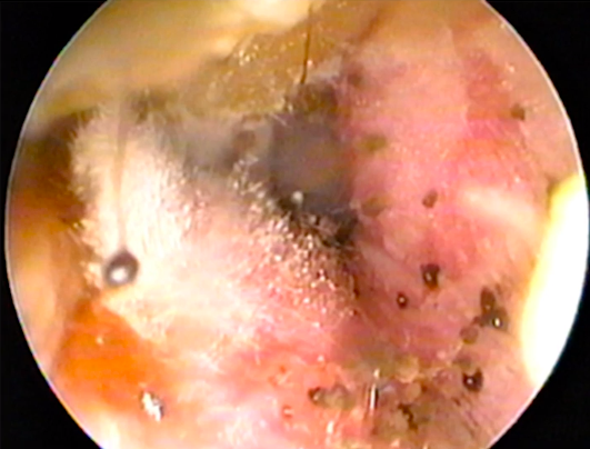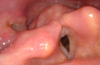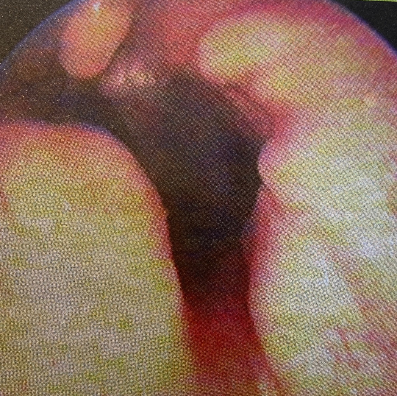 Poliposis ( formaciones con aspecto de granos de uva habitualmente bilaterales ) . Si BL no se requiere una biopsia. La recidiva después de la cirugía es frecuente.