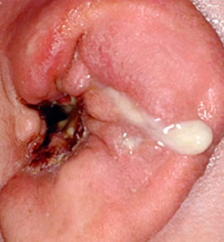 ( Epitelio queritinizante en oido medio con sustancias que producen osteólisis en oído medio )