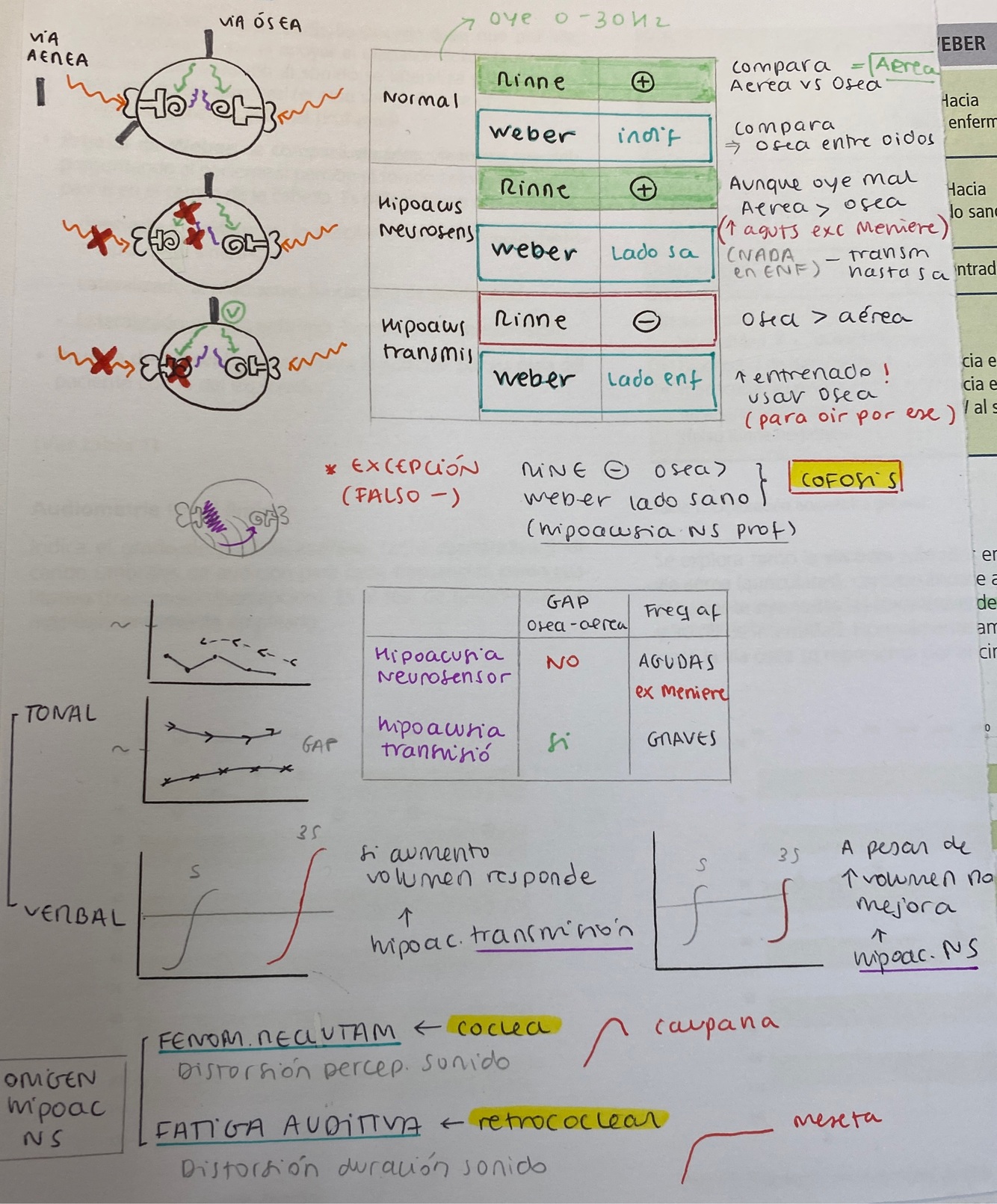 Paciente de 35 años que acude a consulta por hipoacusia de oído izquierdo de varios meses de evolución. Rápido empeoramiento y aparición de acúfenos en el mismo lado. Rinne + en ambos oídos y Weber lateralizado hacia OD. En la audiometrìa verbal, hay importante alteración de la inteligibilidad y adaptación patológica