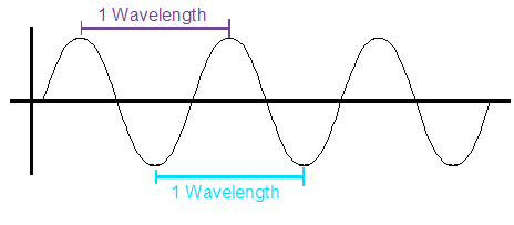 The wavelength of a wave is the distance between a point on one wave, and the same point on the next wave.