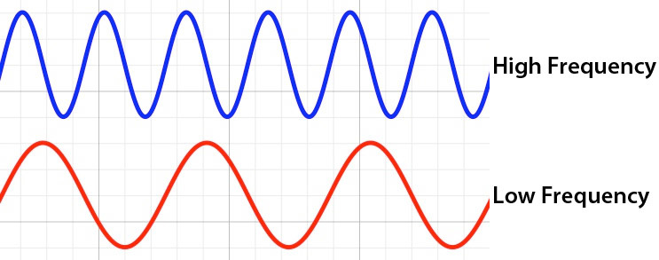 The frequency of a wave is the number of waves per second and is measured in hertz (Hz).