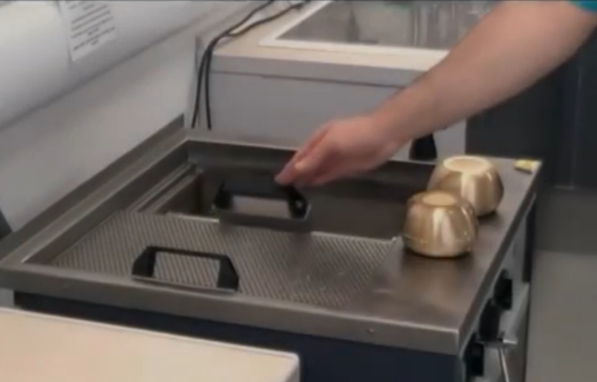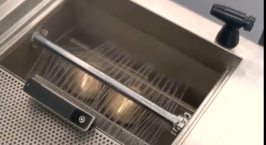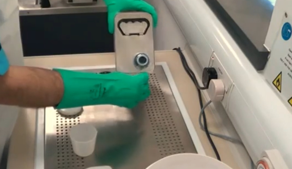 Placed in boiling out tank - water run onto flasks for 7-10 mins