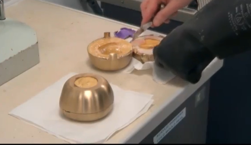 Involves the removal of wax and any temporary base plate - lost wax technique