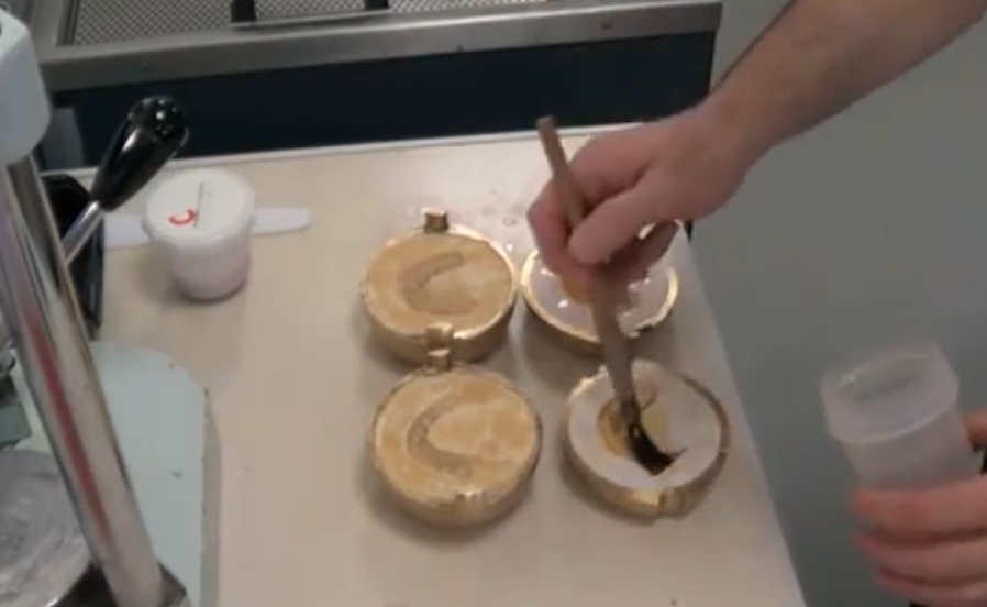 flasks placed into water based heat source or dry heat oven in order to cure resin