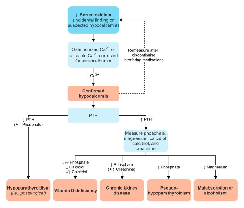 -Serum vitamin D - low levels may indicate a cause of hypocalcemia