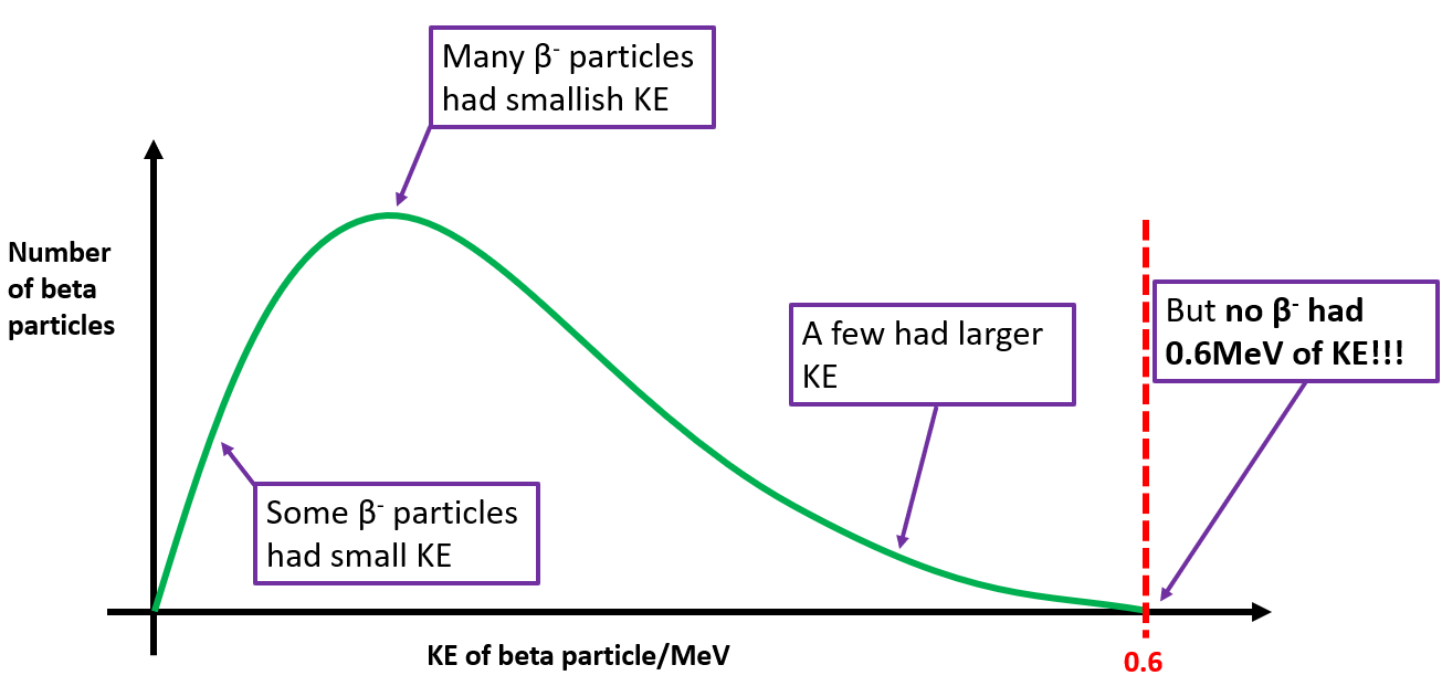 During Beta decay the emitted β- had less energy than expected so another particle carried the rest of the energy