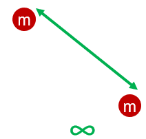 What does the gravitational force act between?