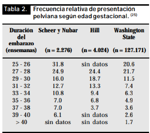 ¿Qué ocurre en la semana 30 con la presentación pelviana?