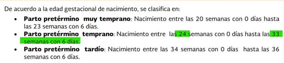 El temprano corresponde desde las 24 a 33.6 SDG