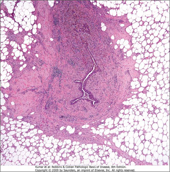 What is the morphology of periductal mastitis?