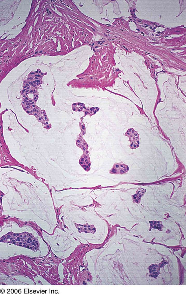 Mucinous: lots of mucin and islands of cells