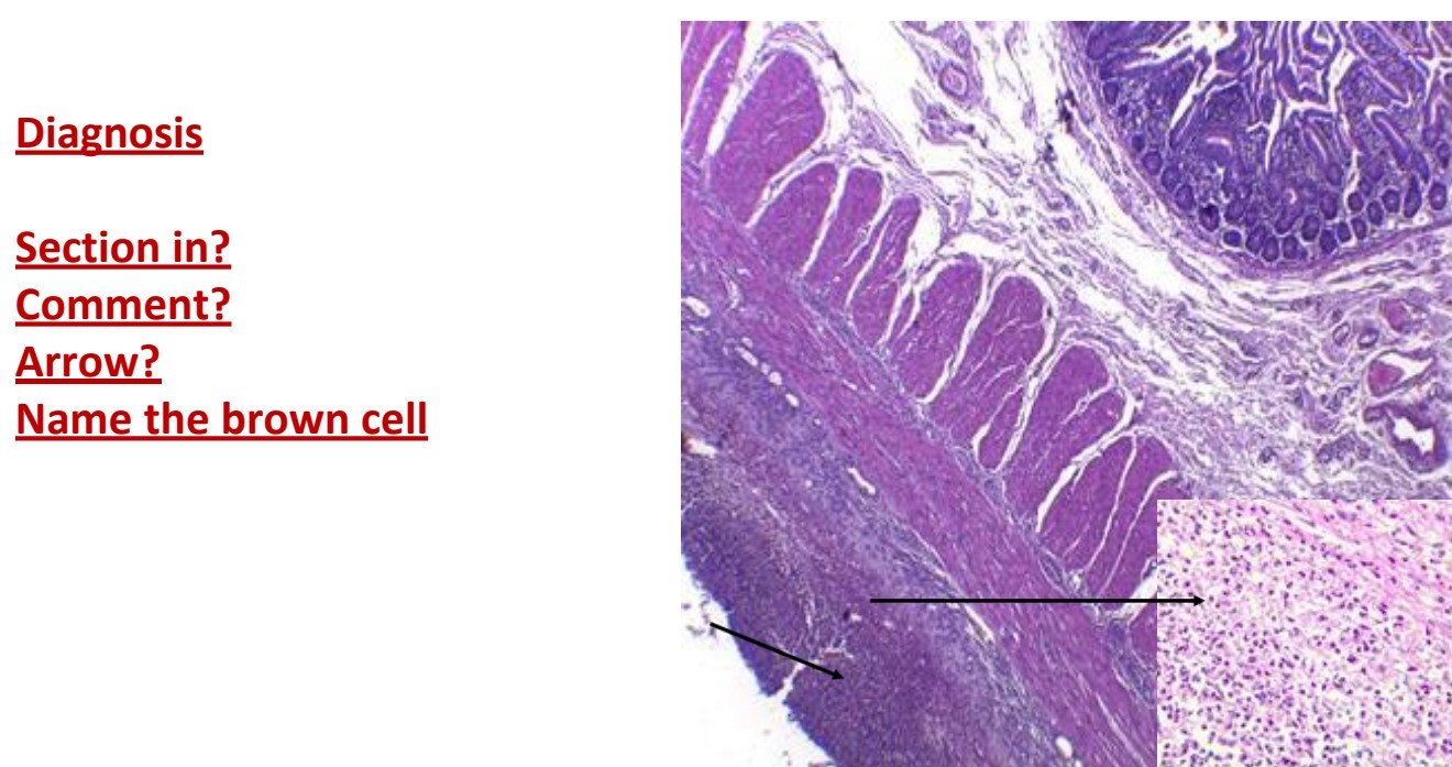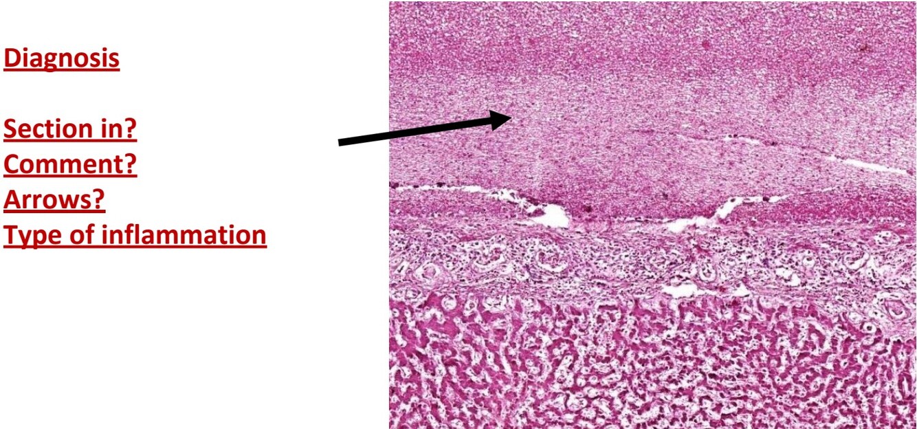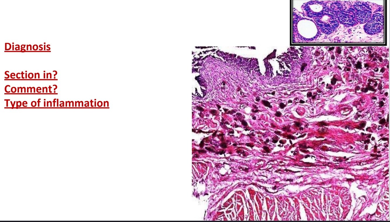 Subserosal CT shows edema, congestion and acute infiltrate