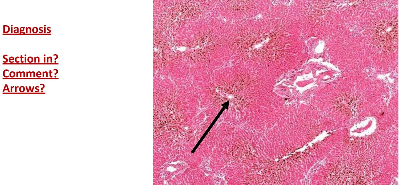 Liver centeral lobules show necrosis