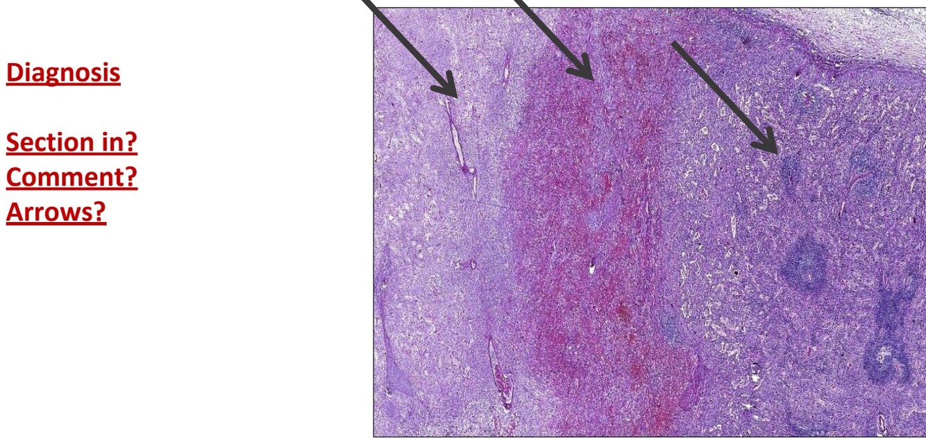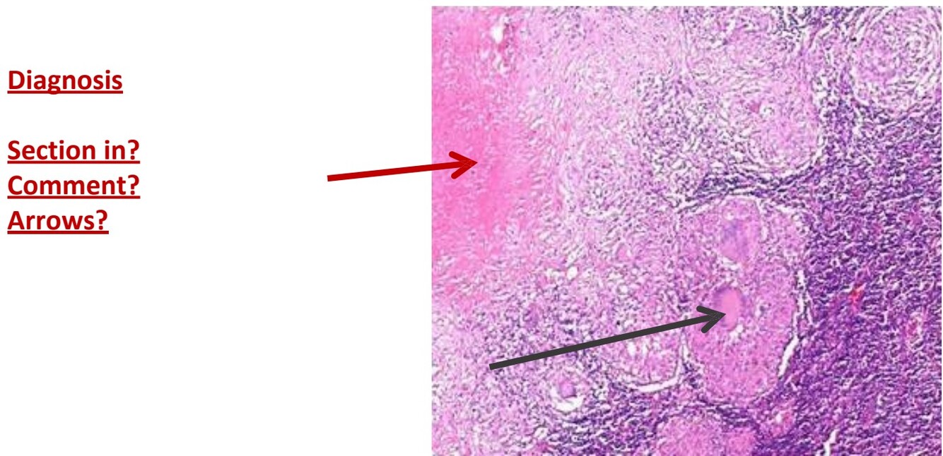 Red arrow is caseation