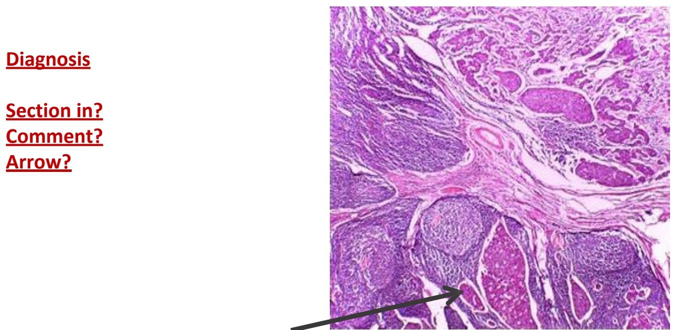 Arrow points to duct (non invasive)