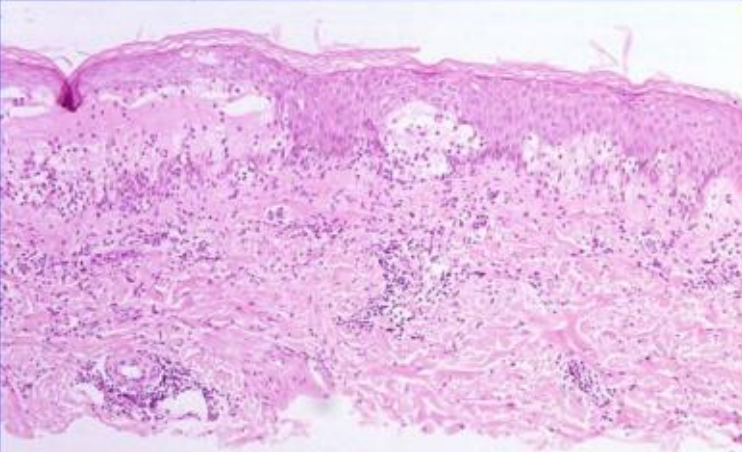 You look at a patients biopsy section and see blisters, lymphocyte infiltrate, edema and epidermal destruction. The patient tells you they are on penicillin. What do you suspect?
