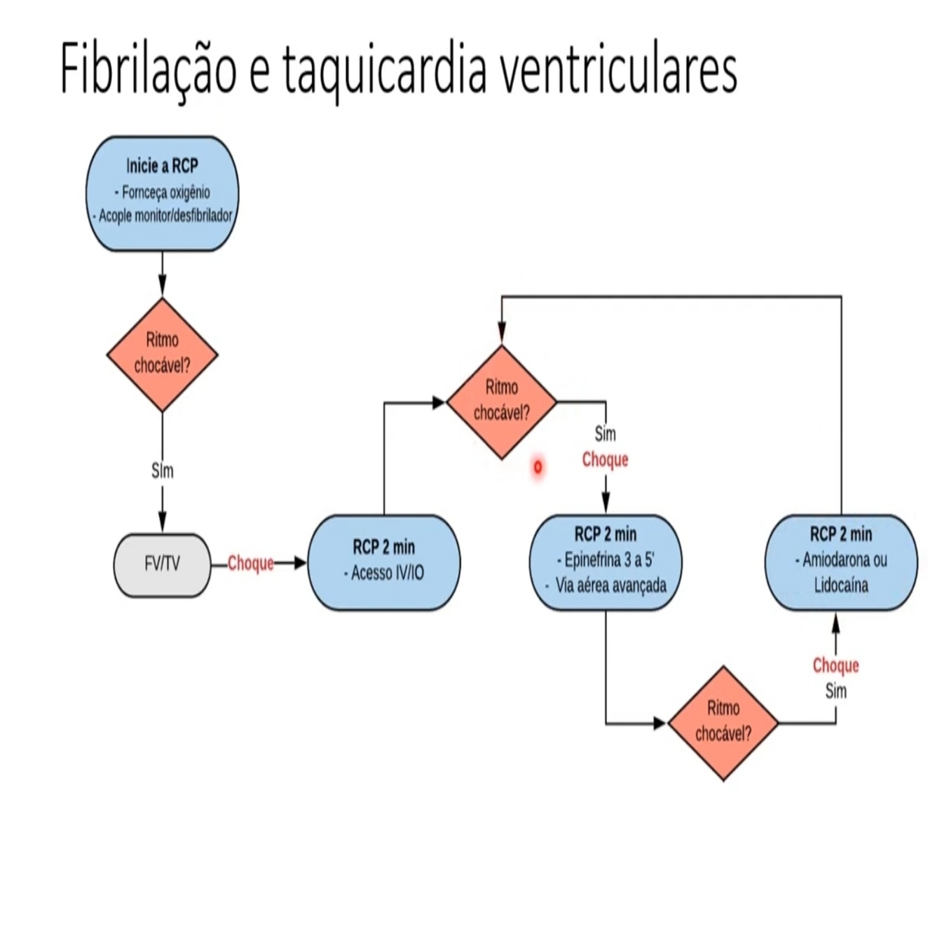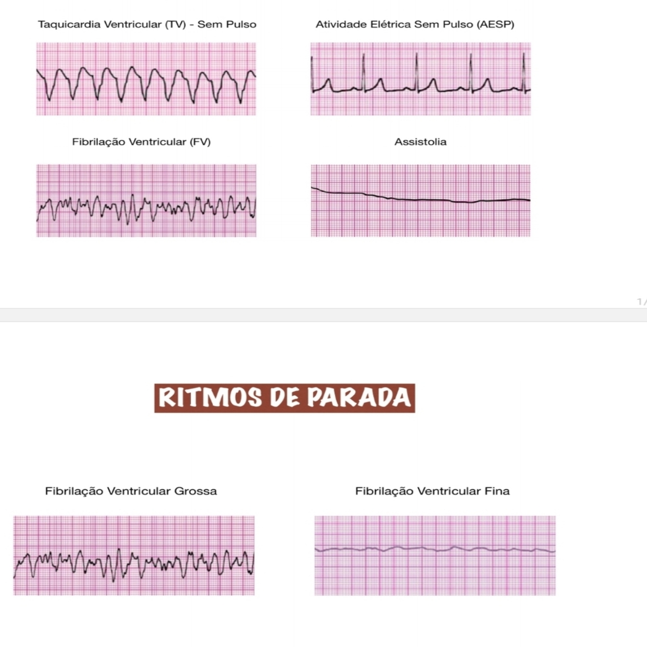 - Fibrilação ventricular = ritmo totalmente caotico, que não se consegue destingui ondas