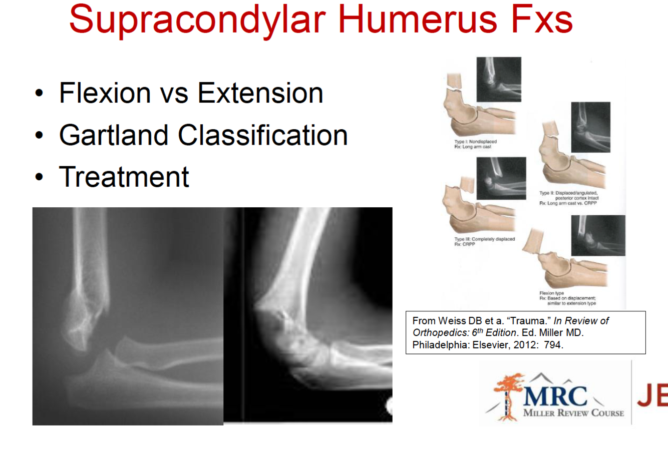 Describe the Gartland classification for supra-condylar humerus fractures: