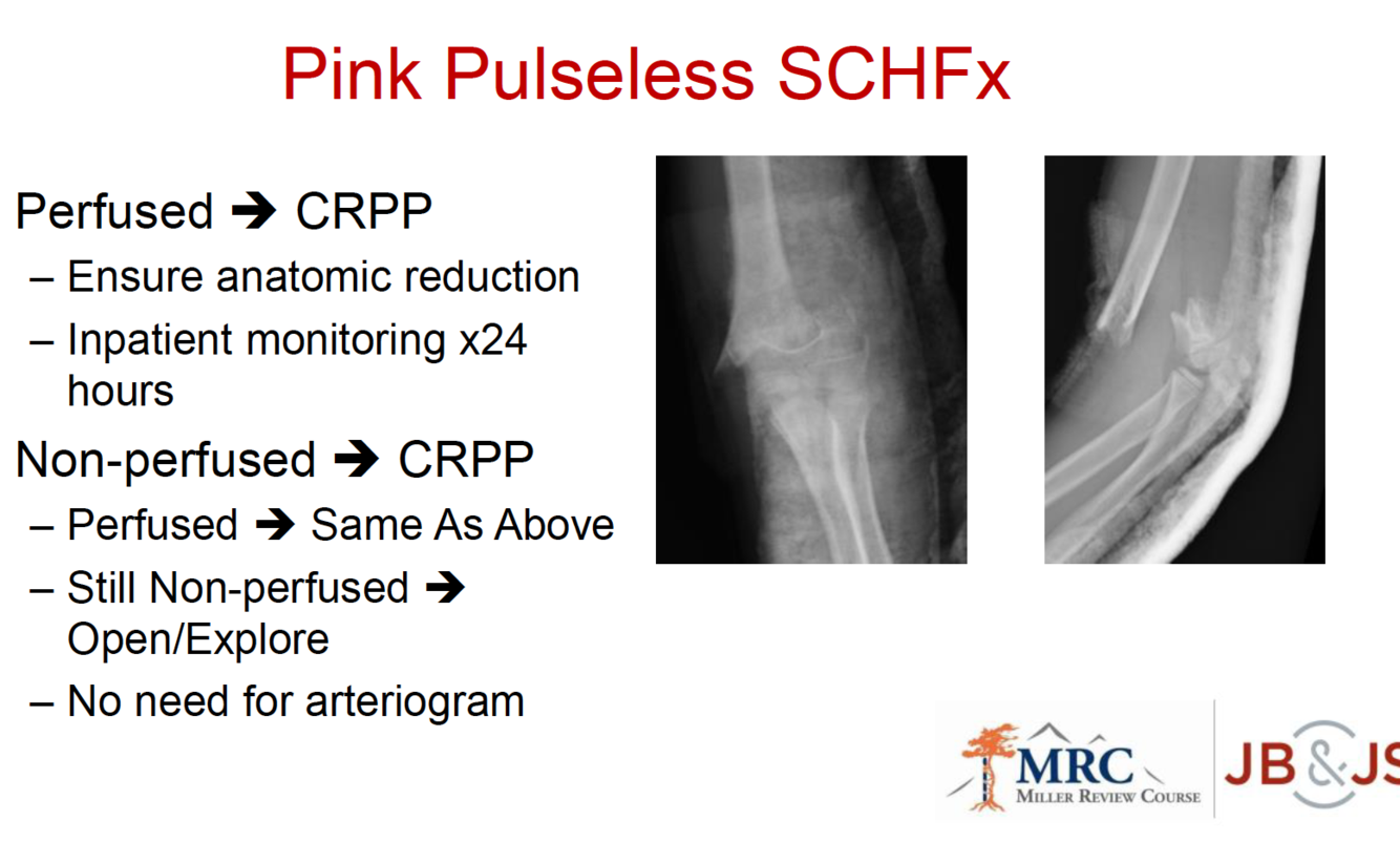 describe the treatment for a pulseless supra-condylar femur fracture: