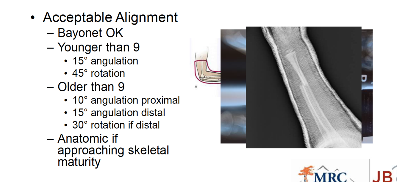what are the acceptable alignments for closed treatment of both bone forearm fractures