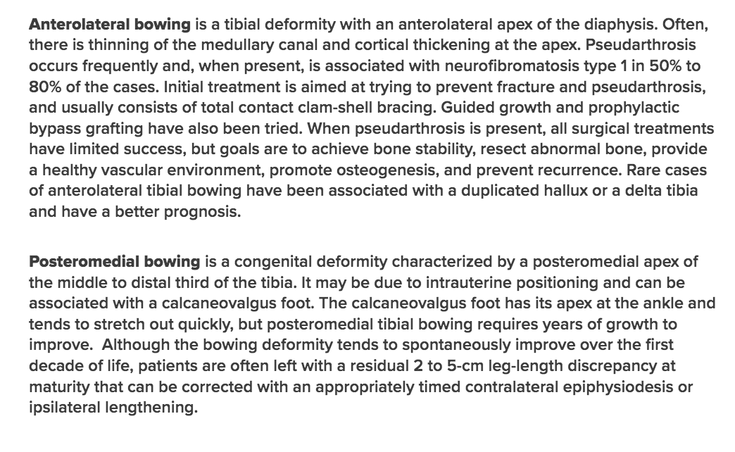 Differentiate between anterolateral bowing and posteromedial bowing.