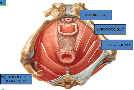 1) Puborretal(Forma uma alça em formato de U que passa posteriormente a junção anorretal • Papel importante na continência fecal 2) Pubococcígeo 3) Íleococcígeo