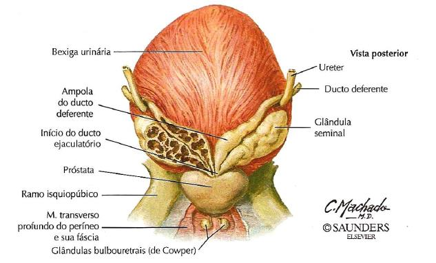 Irrigação: a. vesical inferior, a. retal média Inervação: nn. esplâncnicos pélvicos, plexo hipogástrico inf.