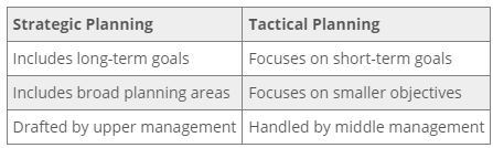 relatively short-term, i.e., less than a year. Upper management is not heavily engaged in these plans; instead they are managed by middle management. Plans, such as sales events, procurement, manufacturing output, etc., are included in tactical planning.