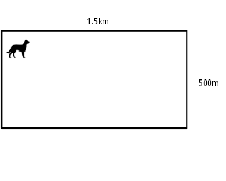 A woman takes her dog for a walk around the edge of a rectangular park that is 500m wide and 1.5km long and ends where she started. How far has she walked?
