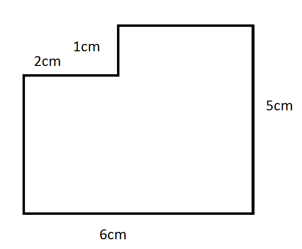 Split the shape into two rectangles, calculate the area of each then add them together