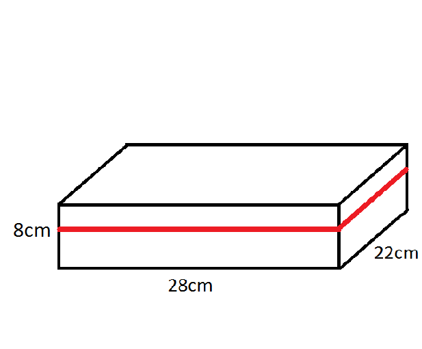 The cake is a rectangle when viewed from above, and the length of the ribbon will have to equal the perimeter of that rectangle.