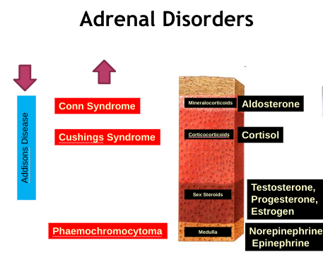 how does each adrenal disorder affect each layer of the adrenal cortex?
