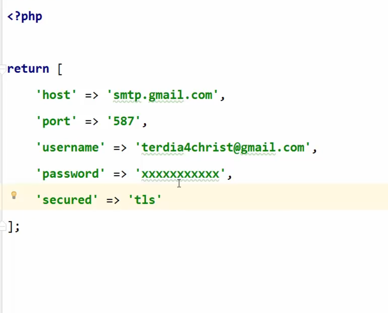SwiftMailer 패키지의 설정 값이다.