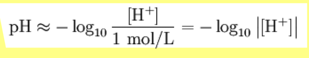pH is the negative logarithm of the hydrogen ion concentration (mol/L)