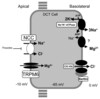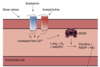 * Glucose enters the B cells via GLUT-2 transporters and is phosphorylated by glucokinase then metabolized to pyruvate in the cytoplasm. * The pyruvate enters the mitochondria and is metabolized to CO2 and H2O via the citric acid cycle with the formation of ATP by oxidative phosphorylation. * The ATP enters the cytoplasm, where it inhibits ATP-sensitive K+ channels, reducing K+ efflux. * This depolarizes the B cell, and Ca2+ enters the cell via voltage-gated Ca2+ channels. * The Ca2+ influx causes exocytosis of a readily releasable pool of insulin-containing secretory granules, producing the initial spike of insulin secretion.