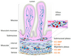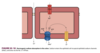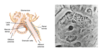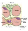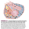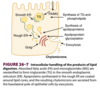 * Insulin is synthesized in the rough endoplasmic reticulum of the B cells. * It is then transported to the Golgi apparatus, where it is packaged into membrane-bound granules. * These granules move to the plasma membrane by a process involving microtubules, and their contents are expelled by exocytosis. * The insulin then crosses the basal lamina of the B cell and a neighboring capillary and the fenestrated endothelium of the capillary to reach the bloodstream.