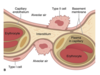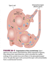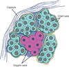 The cells in the islets can be divided into types on the basis of their staining properties and morphology. Humans have at least four distinct cell types: A, B, D, and F cells. What do they secrete? Where are they within the pancreas?