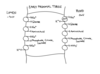 * Like other polypeptide hormones and related proteins that enter the endoplasmic reticulum, insulin is synthesized as part of a larger preprohormone * Preproinsulin originates from the endoplasmic reticulum. * The remainder of the molecule is then folded, and the disulfide bonds are formed to make proinsulin. * The peptide segment connecting the A and B chains, the connecting peptide (C peptide), facilitates the folding and then is detached in the granules before secretion. * Two proteases are involved in processing the proinsulin. * Normally, 90–97% of the product released from the B cells is insulin along with equimolar amounts of C peptide. The rest is mostly proinsulin. * C peptide can be measured by radioimmunoassay, and its level in blood provides an index of B cell function in patients receiving exogenous insulin.