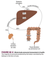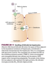 * Glucagon has a half-life in the circulation of 5–10 min. * It is degraded by many tissues but particularly by the liver. Because glucagon is secreted into the portal vein and reaches the liver before it reaches the peripheral circulation, peripheral blood levels are relatively low. * The rise in peripheral blood glucagon levels produced by excitatory stimuli is exaggerated in patients with cirrhosis, presumably because of decreased hepatic degradation of the hormone.