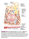 * In pancreatic A cells, it is processed primarily to glucagon and major proglucagon fragment (MPGF). * In lower intestinal and brain L cells, it is processed primarily to glicentin, a polypeptide that consists of glucagon extended by additional amino acid residues at either end, plus glucagon-like polypeptides 1 and 2 (GLP-1 and GLP-2). * Some oxyntomodulin is also formed, and in both A and L cells, residual glicentin-related polypeptide (GRPP) is left. * Glicentin has some glucagon activity. GLP-1 and GLP-2 have no definite biologic activity by themselves. * However, GLP-1 is processed further by removal of its amino-terminal amino acid residues and the product, GLP-1 (7–36), is a potent stimulator of insulin secretion that also increases glucose utilization.
