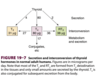 * Secretion is increased by hypoglycemia and decreased by a rise in plasma glucose. * Pancreatic B cells contain GABA, and evidence suggests that coincident with the increased insulin secretion produced by hyperglycemia, GABA is released and acts on the A cells to inhibit glucagon secretion by activating GABAA receptors. * The GABAA receptors are Cl channels, and the resulting Cl influx hyperpolarizes the A cells.