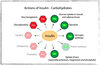 **Rapid** Increased transport of glucose, amino acids, and K+ into insulin-sensitive cells **Intermediate** Stimulation of protein synthesis Inhibition of protein degradation Activation of glycolytic enzymes and glycogen synthase Inhibition of phosphorylase and gluconeogenic enzymes **Delayed** Increase in mRNAs for lipogenic and other enzymes