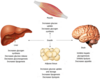 **Adipose tissue** Increased glucose entry, fatty acid synthesis, glycerol phosphate synthesis, triglyceride deposition, K+ uptake Activation of lipoprotein lipase Inhibition of hormone-sensitive lipase **Muscle** Increased glucose entry, glycogen synthesis, amino acid uptake, protein synthesis in ribosomes, ketone uptake, K+ uptake Decreased protein catabolism and release of gluconeogenic amino acids **Liver** Decreased ketogenesis, glucose output due to decreased gluconeogenesis Increased glycogen synthesis, and increased glycolysis, protein synthesis, lipid synthesis