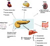 * Insulin is anabolic, increasing the storage of glucose, fatty acids, and amino acids. * Glucagon is catabolic, mobilizing glucose, fatty acids, and the amino acids from stores into the bloodstream. * The two hormones are thus reciprocal in their overall action and are reciprocally secreted in most circumstances. * Insulin excess causes hypoglycemia, which leads to convulsions and coma. Insulin deficiency, either absolute or relative, causes diabetes mellitus (chronic elevated blood glucose), a complex and debilitating disease that if untreated is eventually fatal. * Glucagon deficiency can cause hypoglycemia, and glucagon excess makes diabetes worse. * Excess pancreatic production of somatostatin causes hyperglycemia and other manifestations of diabetes.