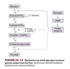 * Glucagon is **glycogenolytic, gluconeogenic, lipolytic, and ketogenic**. * In the liver, it acts via Gs to **activate adenylyl cyclase and increase intracellular cAMP**. This leads via protein kinase A to activation of phosphorylase and therefore to **increased breakdown of glycogen and an increase in plasma glucose**. * However, glucagon acts on different glucagon receptors located on the same hepatic cells to **activate phospholipase C**, and the resulting **increase in cytoplasmic Ca2+ also stimulates glycogenolysis**. * Protein kinase A **also decreases the metabolism of glucose-6-phosphate** by inhibiting the conversion of phosphoenolpyruvate to pyruvate. * It also **decreases the concentration of fructose 2,6-diphosphate** and this in turn inhibits the conversion of fructose 6-phosphate to fructose 1,6-diphosphate. * The resultant **buildup of glucose-6-phosphate leads to increased glucose synthesis and release**.